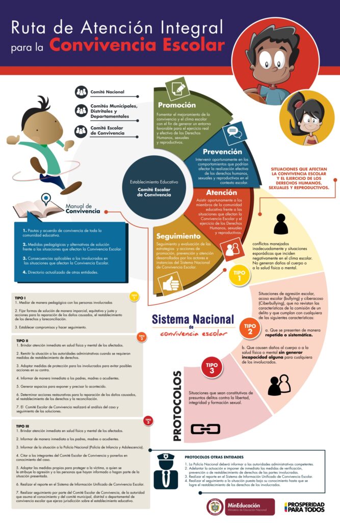 - Comité Nacional, Municipal, Distrital, Departamental y Comité Escolar de Convivencia, encargados de liderar acciones para fortalecer la convivencia.